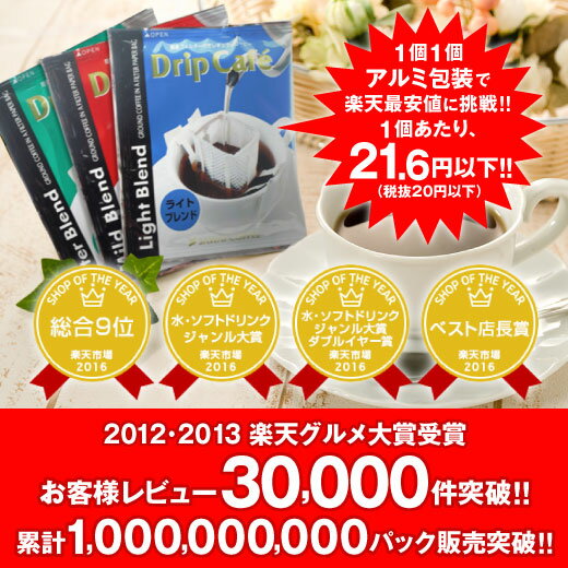 ・名称 ドリップバッグコーヒー ・原材料 コーヒー 豆 ・原産地 ブラジル・コロンビア・他 ・内容量 8g×150袋 ・賞味期限 製造日より一年間。 ・ 保存方法 常温保存 ・事業社名 ・事業者所在地 株 式会社 澤井珈琲 鳥取県境港市竹内団地278-6 ・備考 商品内訳 ライトブレンド × 50個 ビタ ーブレンド × 50個 マイルドブレンド × 5 0個 ・2012楽天グルメ大賞受賞 ・2013 楽天グルメ大賞受賞 ・美味しくないと感じられたら、 返品を承ります。 詳しくは、こちらから 北海道・沖 縄県への発送は 別途400円(税別)の特別送料をお 願いしております。 2015年04月10日 レビュ ー点数4.68 2015年08月05日 レビュー総 数32,682超 ※一部離島地域は更にお時間をいた だく場合がこざいます。※天候や交通状況によって前後 する場合がございます。ページの上へ戻る お気に入り に入れる